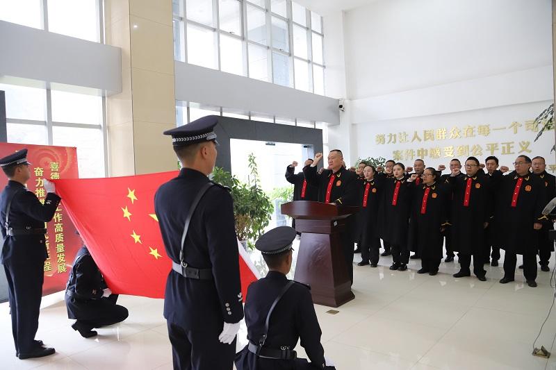 宪法宣誓彰显担当隆重举行宪法宣誓仪式,进一步引导广大干警增强宪法意识,忠于宪法、遵守宪法、维护宪法,以实际行动促进宪法实施。