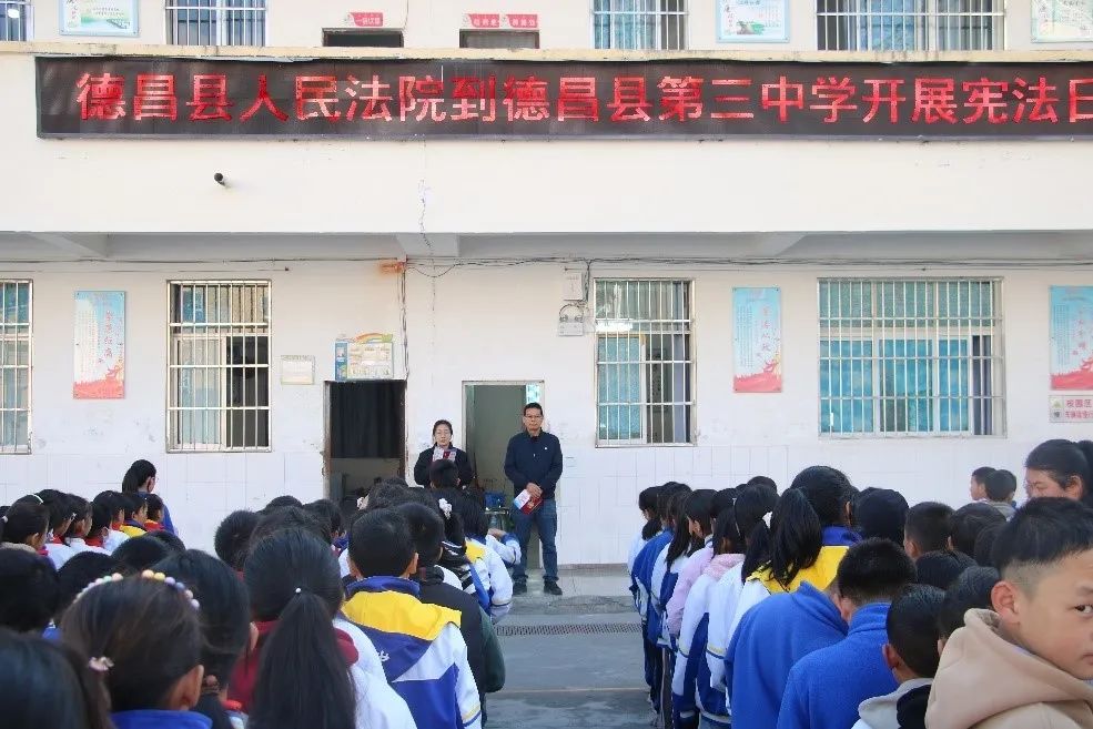 德昌县法院在德昌县第三中学开展“12.4” 宪法日宣讲活动,法官们从“我国的法律法规、如何预防未成年人犯罪、认识发生在同学们身边的不良行为、未成年人的权利与义务”等方面入手,利用自身专业知识,给同学们带来生动有趣的法治宣传课。