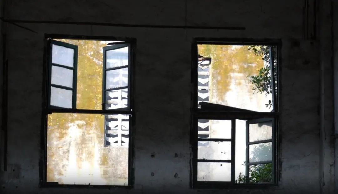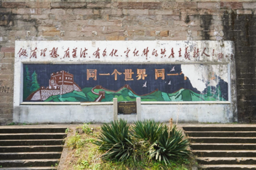 渝州大学教学楼,昔日墙上的标语清晰可见。图源:追风少年队
