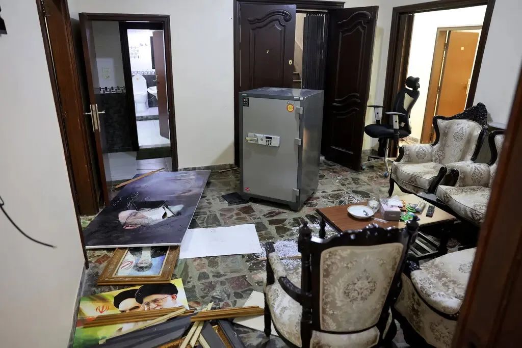 尽管如此,据在伊朗社交媒体上流传的画面显示,伊朗驻叙利亚大使馆当天遭武装人员袭击,使馆建筑玻璃上有弹孔,文件散落地面。此外,一些人还爬上大使馆的围栏,撕下近期被以色列暗杀的黎巴嫩真主党领导人纳斯鲁拉以及此前遭暗杀的伊朗高级将领苏莱曼尼的巨幅画像。伊朗外交部后来表示,所有外交人员都很安全,使馆馆舍遭到破坏时没有人在场。