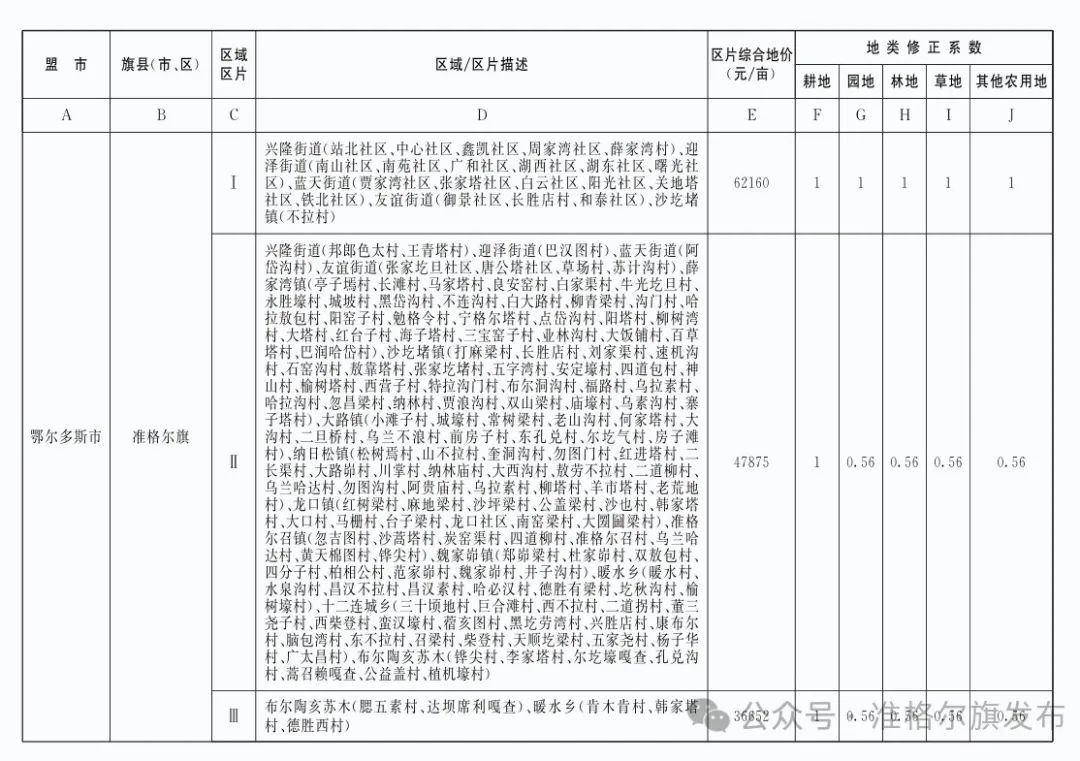 答:土地征收补偿:“1号文件”:《内蒙古自治区人民政府办公厅关于公布自治区新一轮征地区片综合地价调整更新成果的通知》(内政办发〔2023〕92号)区片综合地价,即Ⅰ类区62160元/亩,Ⅱ类区47875元/亩,Ⅲ类区36652元/亩。