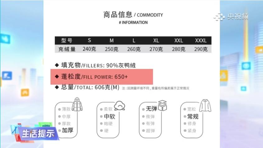 面对市场上种类繁多的羽绒服,我们应该如何辨别“真假羽绒服”?以下8个技巧叫你识别:一看:看产品标签信息是否齐全。标签应该标注生产厂名、羽绒种类、绒子含量、充绒量、面料材质、产品尺寸等信息。