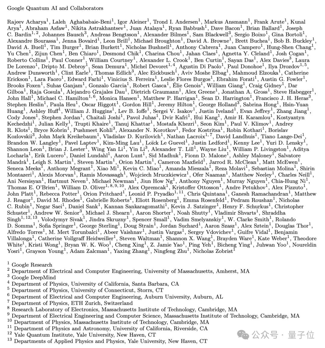 这项具有突破性的研究,论文署名为Google Quantum AI及其合作者,包括但不限于:
