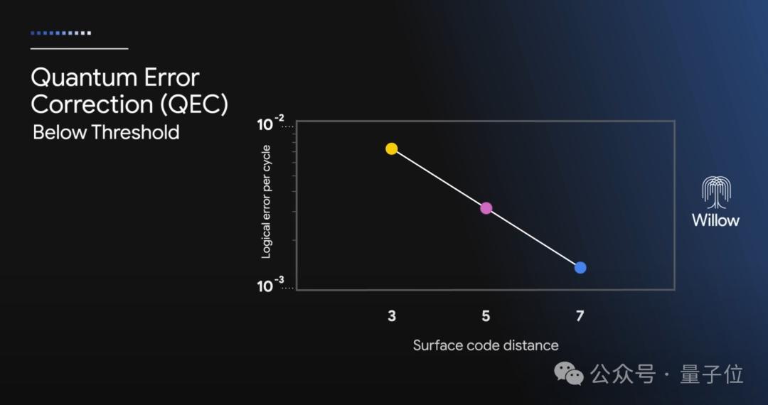 随着量子比特的增加,Willow可以实现指数级的错误率降低——这是量子纠错领域30年来一直试图解决的关键挑战。