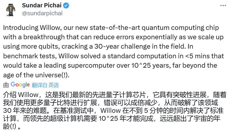5分钟完成最强超算10-25年工作,谷歌量子芯片重大突破,马斯克、奥特曼齐祝贺