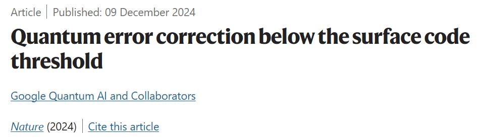 谷歌这次 Willow 量子芯片的相关研究已发布在最新一期的《自然》杂志上:https://www.nature.com/articles/s41586-024-08449-y