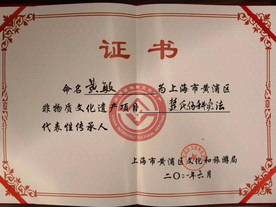 2007年楚氏伤科被评为黄浦区第一批区级非物质文化遗产。楚氏伤科
