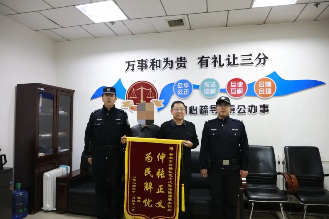 近日,一起机动车交通事故纠纷案的原告当事人来到神木市价格认证中心驻法院调解工作站,将一面印有“伸张正义 为民解忧”的锦旗送于调解团队,对其尽心尽力、公平公正、热心为民调解案件表示感谢。在这起调解案件中该工作站联合法院法警队共同参与调解,弹性的调解+硬性的执法使得本案成功和解。
