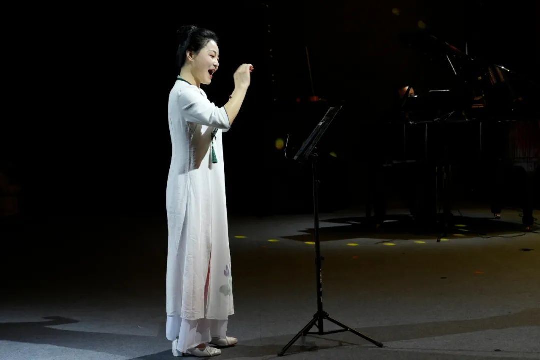 音乐会在“诗词乐章”的吟唱中拉开序幕。花语女子合唱团成员冯敏作为推介人,将观众带入了千年诗韵的世界。