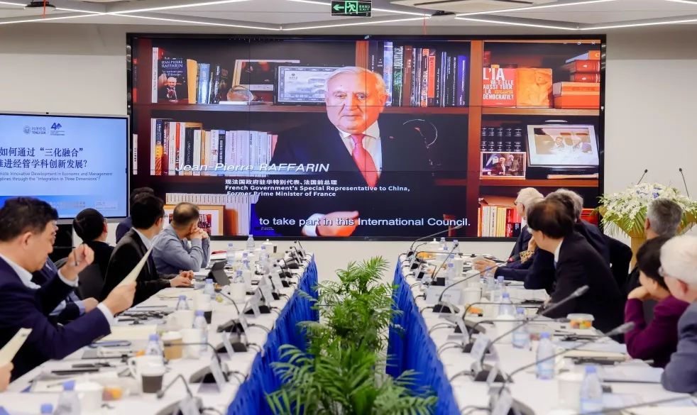 Jean-Pierre RAFFARIN在视频发言中表示,全球管理教育正变得越来越技术化和细分化,需要大学打破学科界限,将不同的知识领域整合起来,同时重视绿色化、生态化主题,以多元思维、全球视野应对未来挑战。