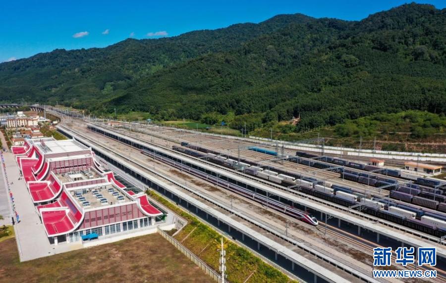 2024年12月3日,由老挝入境的一列“澜沧号”列车停靠在中老铁路磨憨站站台。新华社记者 陈欣波 摄高质量共建“一带一路”的标志性工程——中老铁路,开通运营三周年之际交出亮眼“成绩单”:累计发送旅客超4300万人次、运输货物4830万吨,全线单月旅客发送量由开通初期的60万人次增至目前的160万人次;跨境货物列车每日开行数量由开通初期的2列增加到目前的18列,跨境货物运输已覆盖国内31个省(区、市)和老挝、泰国、越南、新加坡等19个国家和地区,商品种类拓展至3000余种……