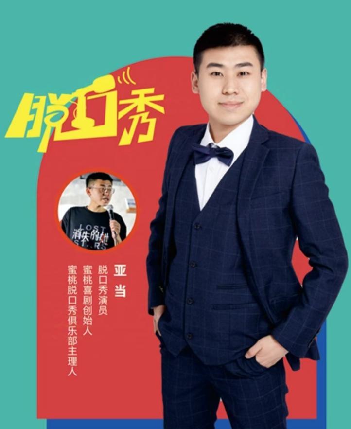 亚当,本科毕业于上海大学电影学院,笑果新喜剧大赛冠军,中国传统文化艺术二人转传承者,文王鼓脱口秀创始人。特长:文王鼓、二人转、定制脱口秀编剧、小品、漫才等。