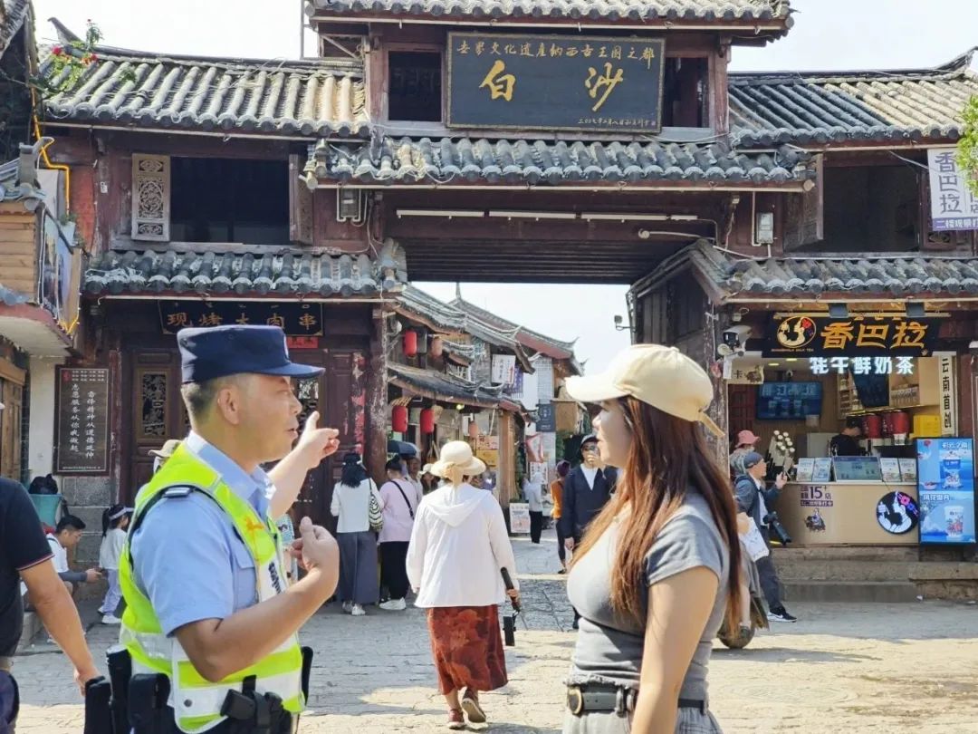 白沙古镇作为“丽江最美的雪山观景地,来丽必到的打卡景点”,旅游高峰时段,古镇的日均游客达1.2万人次,2023年1月以来,超过700万游客到访白沙古镇。9时至10时,古镇入口车流较多,容易交通拥堵;10时至15时,古镇内游人较多;下午15时后,进入古镇车辆游客减少,离开古镇前往城区车辆游客增多。把握不同时段的规律特点,他与同事们跟随人流、车流变化,出现在游览古镇人流、车流需要的位置。
