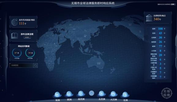 3、【企业“出海”重大利好!全球法律服务一触即达】“从系统的检索可以一目了然地看到,我们在马来西亚当地合作的涉外法律服务机构情况,黄色图标代表律师事务所,紫色图标代表国际仲裁机构……”12月11日,在无锡市涉外法律服务推进会上,无锡市全球法律服务即时响应系统亮相。这个由市司法局、市律师协会共同开发的系统,汇集了340家境内外法律服务机构,覆盖了100多个国家和地区,为企业“出海”保驾护航。