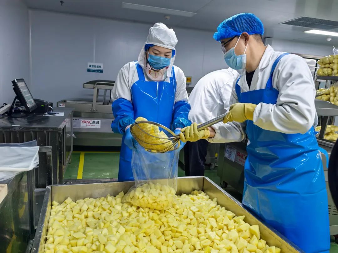 “我们这里主要加工土豆、胡萝卜、芹菜等,洗好切好包装好,再用生鲜冷链配送车送往东胜、康巴什等地的学校,订单平均每天约10000斤左右。截至11月底,净菜车间日加工能力约1万斤,累计配送净菜约134.97万斤,水果、副食、调味品、米面粮油约47.09万斤。”