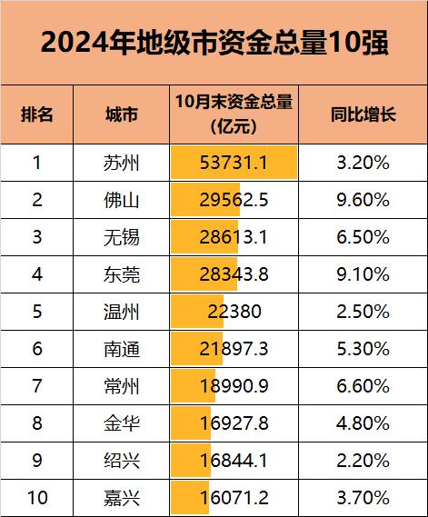 近日,多个地级市2024年10月末的资金总量出炉。