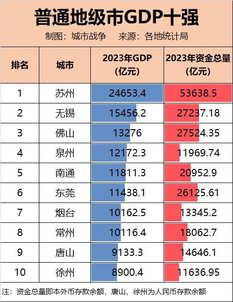 以下为普通地级市GDP十强: