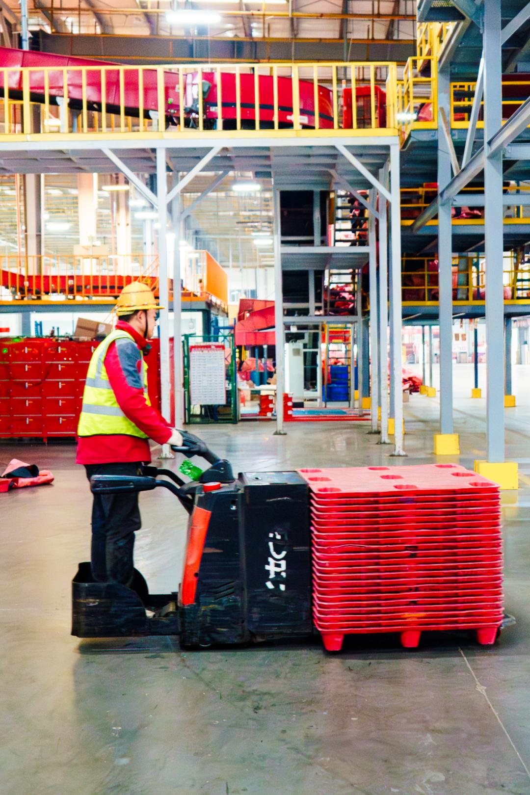 当然,智能化物流并非完全摒弃人工。叉车师傅们作为经验丰富的 “行家里手”,熟练地操控着快递叉车稳稳抬起货物,在各个区域自如穿梭。