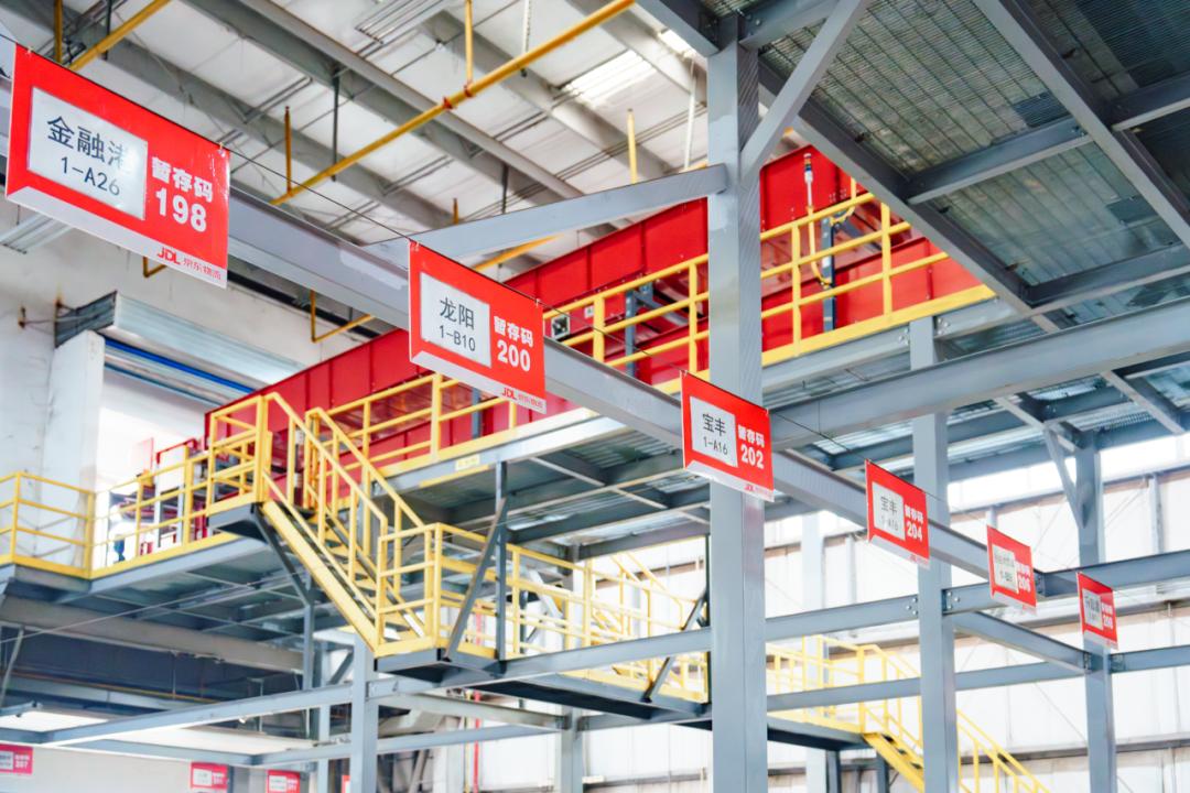 “金融港”“龙阳”“宝丰” 等一排排物流分区牌整齐且醒目,它们就像是一个个充满使命感的小向导,把货物准确无误地指引到各自的 “小天地”,等待着后续高效的运输环节。