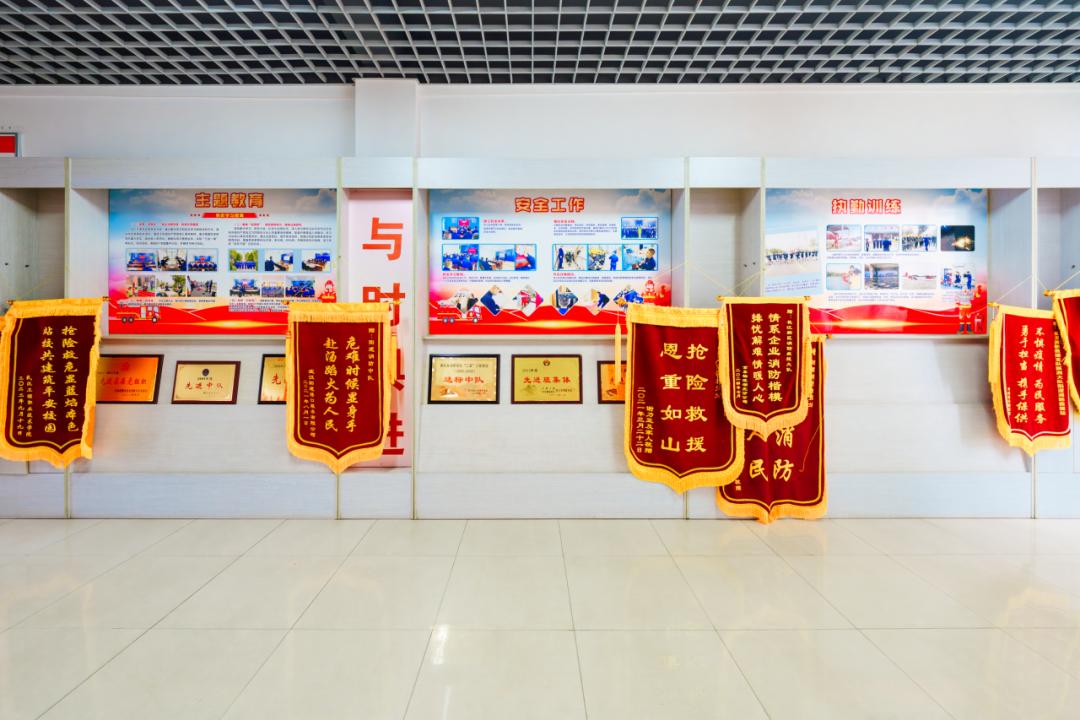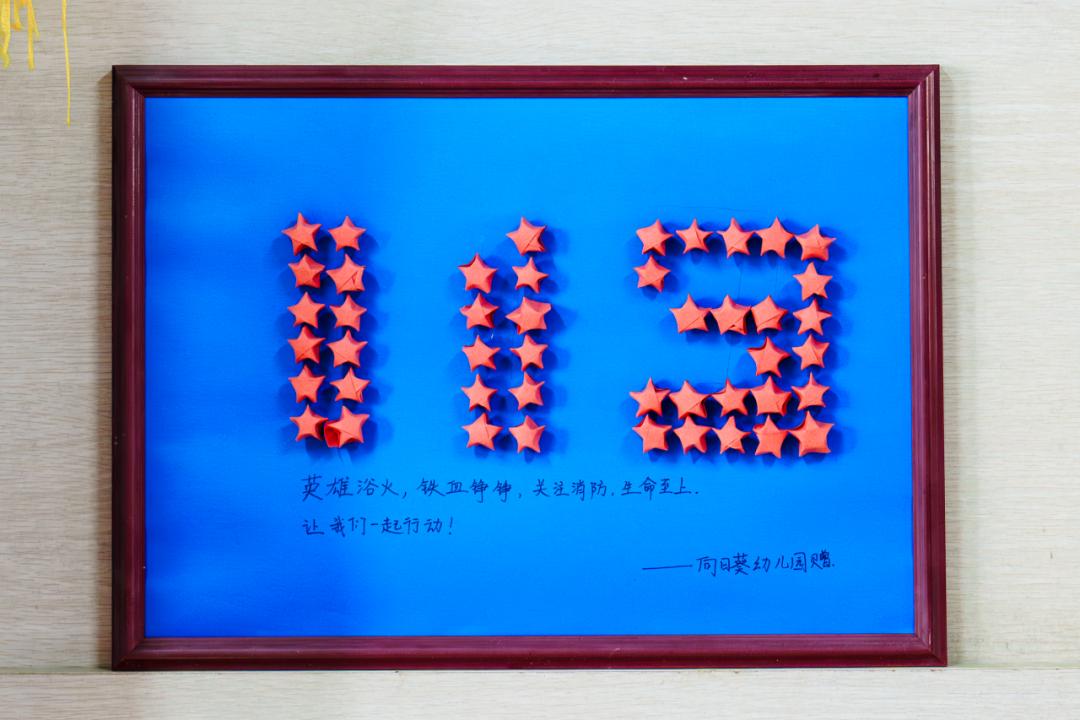 走进消防站的荣誉室,锦旗似火,奖牌如星,默默见证着消防员们的荣耀往昔。在众多殊荣之中,一幅出自向日葵幼儿园小朋友之手的手工作品尤为引人注目,其在满室光辉间散发着别具一格的温暖与纯真韵味。