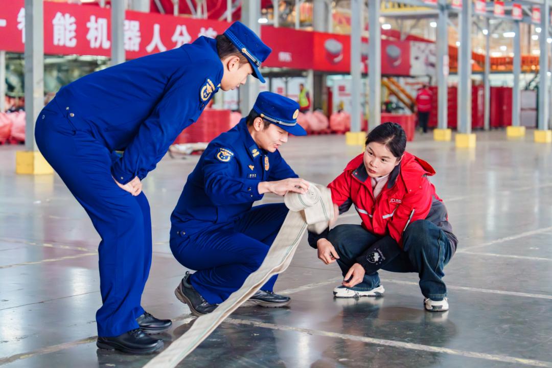 步入到物流园的仓储、分拣区,消防员们仔细查验了水带的完好程度,从水带的材质是否老化、有无破损裂缝,到接口的连接是否牢固紧密,都一一进行严格把关。