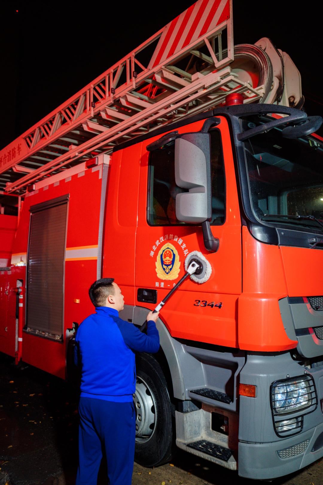 夜幕降临,出警归来的“老伙计”消防云梯车满身泥泞。消防员们拧开水阀、拿起拖布,借着清澈的水流有力地在云梯车的车身上来回擦拭,为它洗去战斗的疲惫与征尘,让它能在短暂的休整后,再次以最佳状态迎接下一次未知的挑战。在年终大促的热潮中,无论是探寻智慧物流园的奥秘,还是在园区里开展消防工作,亦或是在站内丰富多彩的生活,他们皆彰显出别具一格的魅力与勇毅担当。