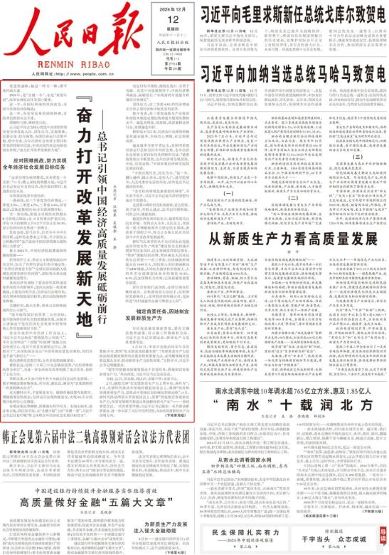 《人民日报》(2024年12月12日 第 01 版)“奋力打开改革发展新天地”