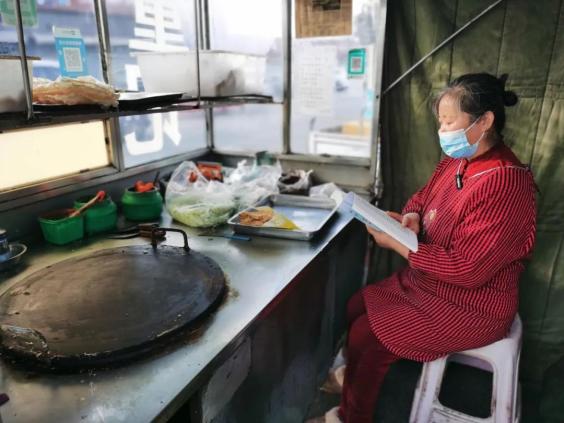 群里的老师都是在每天早晨教大家如何写诗歌,可这正是吴红立最忙的时候。每摊完一套煎饼,吴红立就赶紧看一眼手机。有顾客不解地问道:“你也爱玩手机啊?”吴红立笑笑回应:“我在学习。”