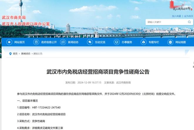 小布近日从武汉市商务局获悉,武汉不久后将落地首家市内免税店,目前该项目已进入经营招商阶段。