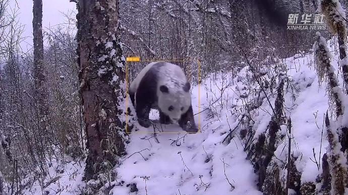 近日,大熊猫国家公园北川片区拍摄到大熊猫在雪地中活动影像。详情(来源:新华社)