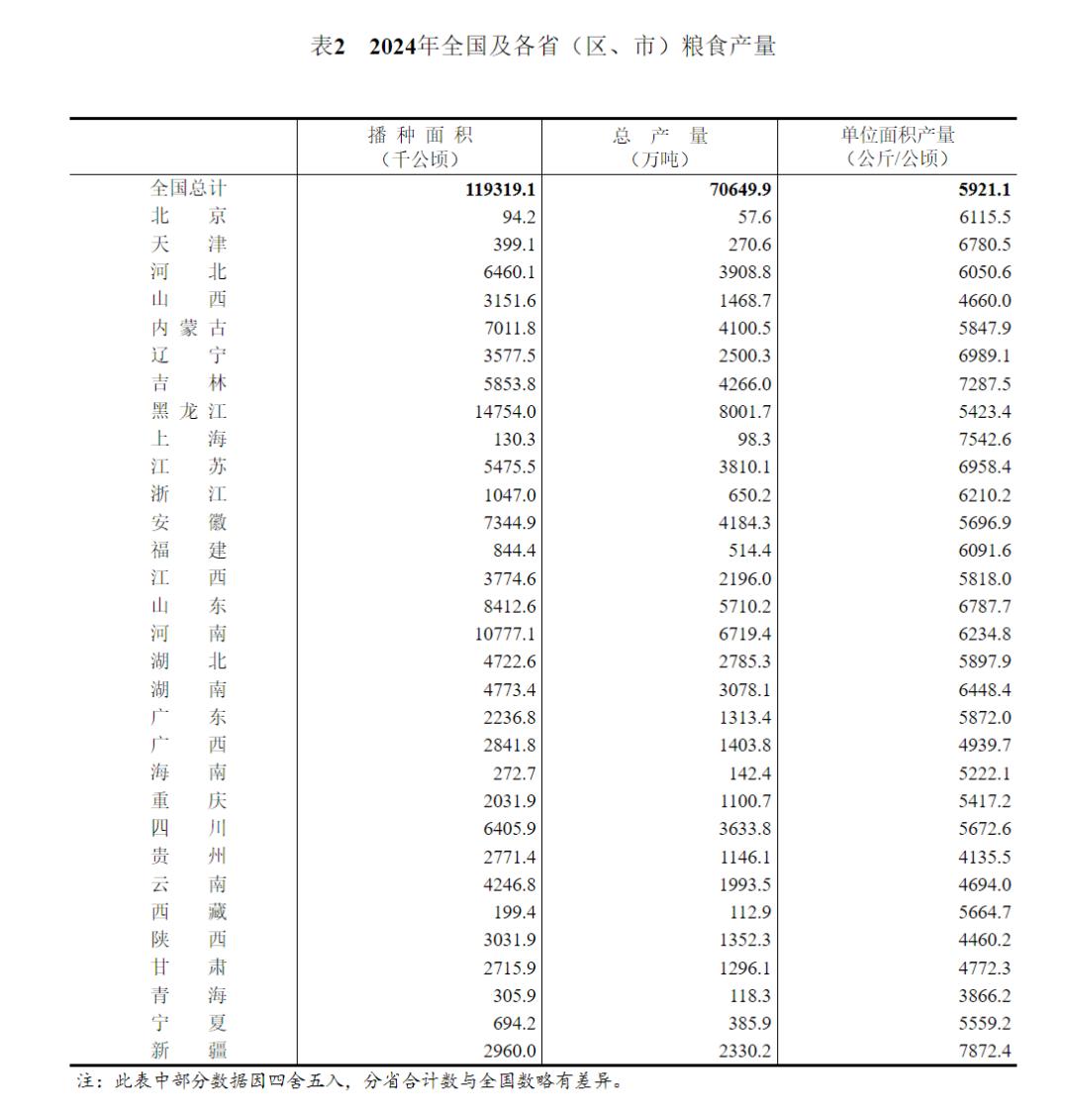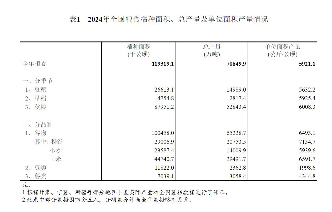 【数据发布】国家统计局关于2024年粮食产量数据的公告