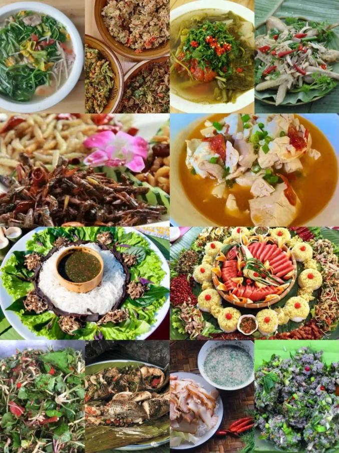 酸扒菜、老豆腐、撒大鲁等都是傣族的代表菜。景颇族的舂菜、焖菜、拌菜、烧烤、鬼鸡、撒撇、竹筒菜、煮杂菜,以天然、绿色、生态的动植物产品为原料,采用舂、拌、烤、煮、炸等方法精心烹制,因酸、辣、苦等独特风味而闻名。