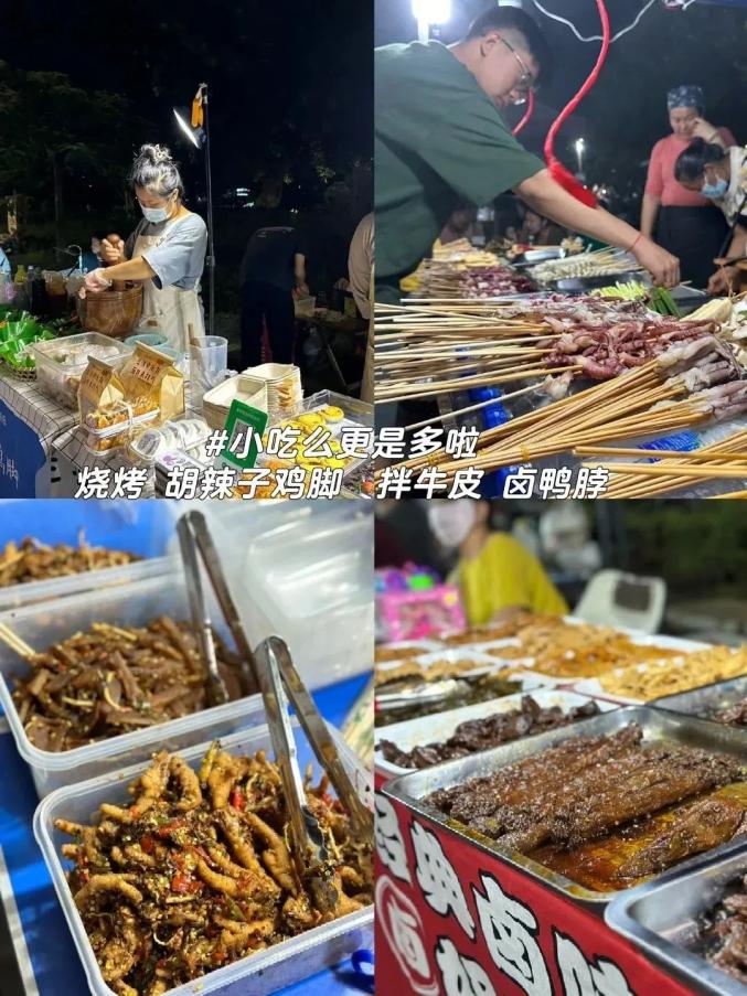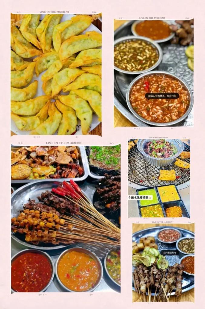 夜宵:每当夜幕降临,华灯初上的时候,这座边境小城,褪去白日的喧嚣,重新焕发出了活力。宵夜摊前,陆续坐满了人。在这座夏季漫长的小城,大多数人首选的宵夜,是烧烤。生活在这里,一顿烧烤,搭配三五种蘸水,已经不足为奇。因为,对于烧烤来说,蘸水才是它的灵魂。生活在这座小城,给人的感觉是,万物皆可烤。