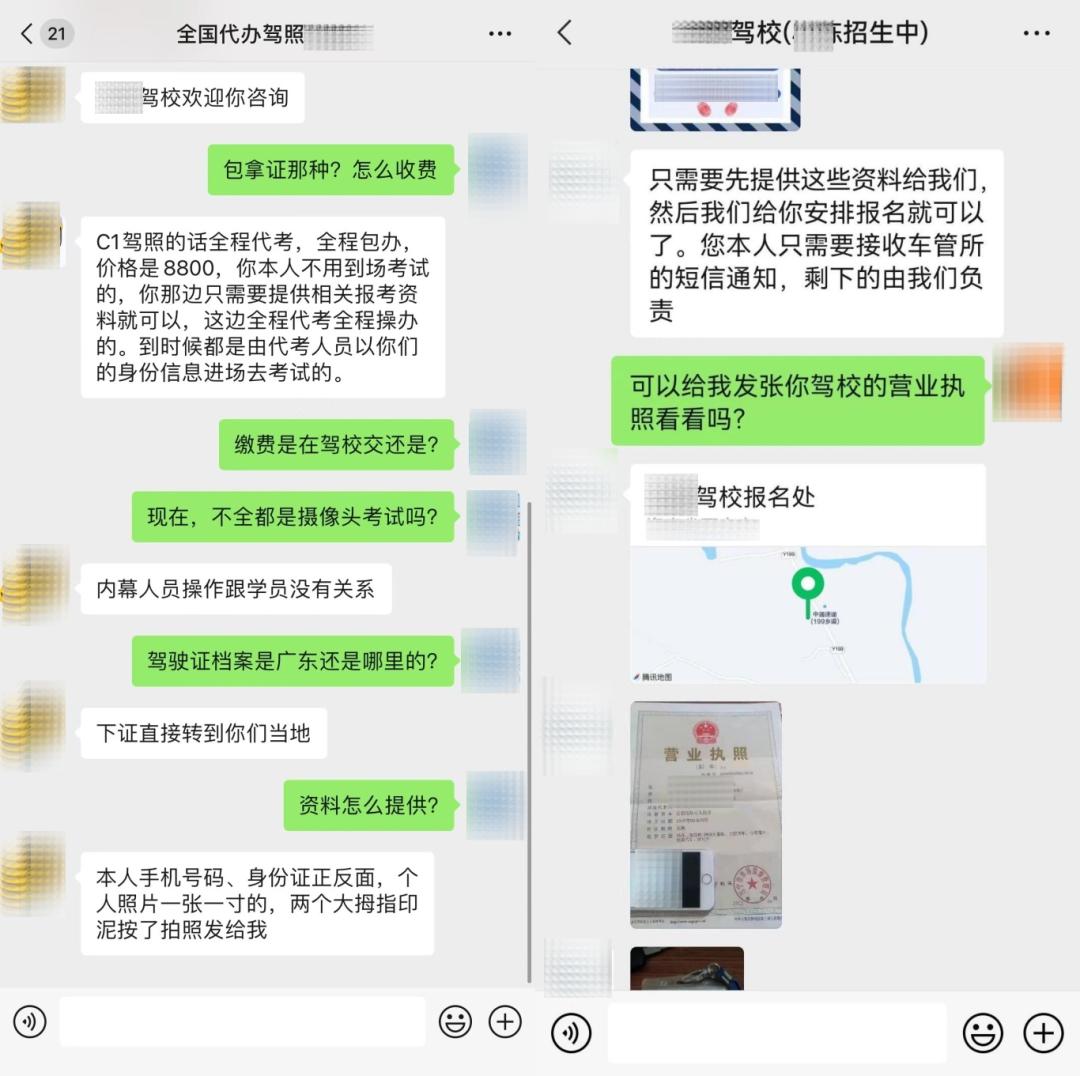 一、代考驾照诈骗手法解析:1. 诈骗分子仿冒驾校在网上宣传“驾照免考拿证”业务,以“正规机构、系统可查、线上办理、免学免验、内幕操作、快速下证”等噱头吸引用户,诱导用户添加社交账号进行沟通。在沟通期间使用虚假营业执照、虚假交警系统、虚假合同、虚假教练证等骗取信任。
