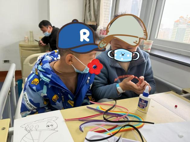 小喜橙和小伙伴一起做手工小喜橙在和5个小伙伴,一起在课堂上上了“健康幸福课-定制完美小孩”与“艺术融合课-自画像课”两堂课,孩子们和志愿者老师之间友好的互动,让在院时光多了一些童年本该有的欢欣。