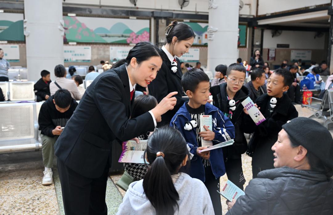 (西昌站的候车室内,陈小容为旅客答疑解惑)