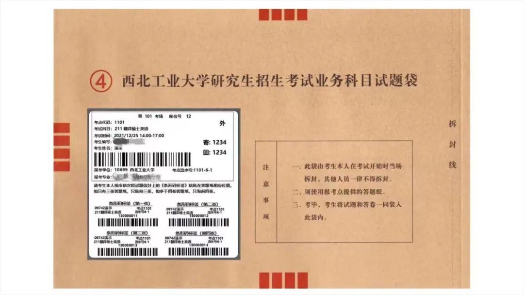 2.如果只有3张答题纸,没有第4张答题纸,那么请将“第四张条形码”保留在信封袋上。