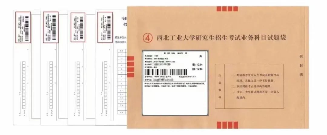 参加考试时,考场会发放自命题答题纸,其左上角设有条码粘贴区域,并且带有序号。同时每位同学,将会获得带有答题纸条形码的试题信封。