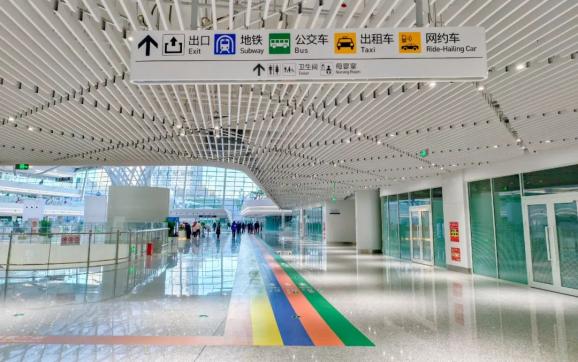 进入大厅后顺着地铁标识及地面蓝色地铁指引