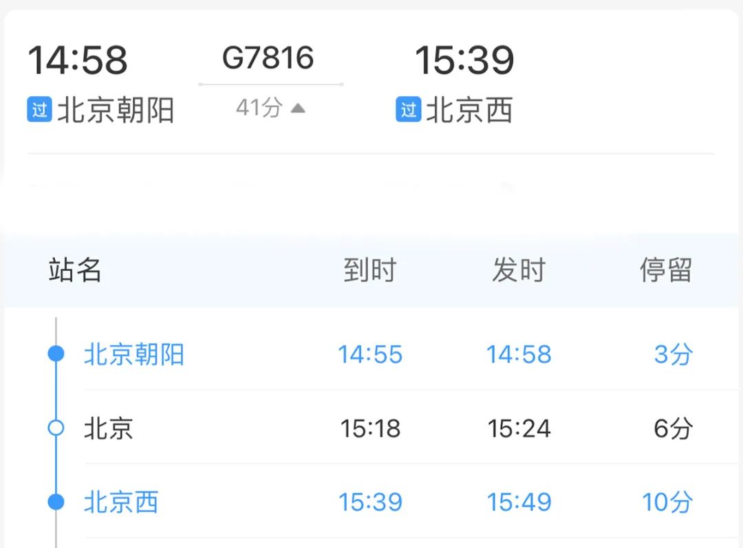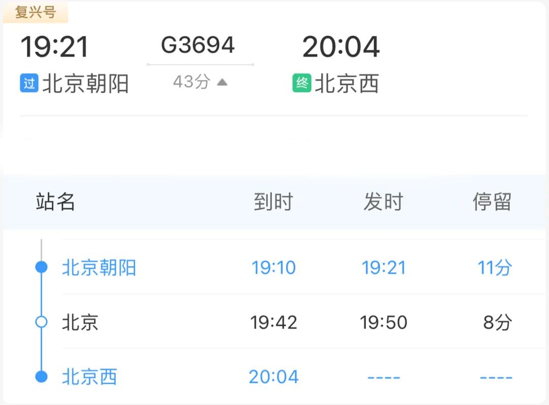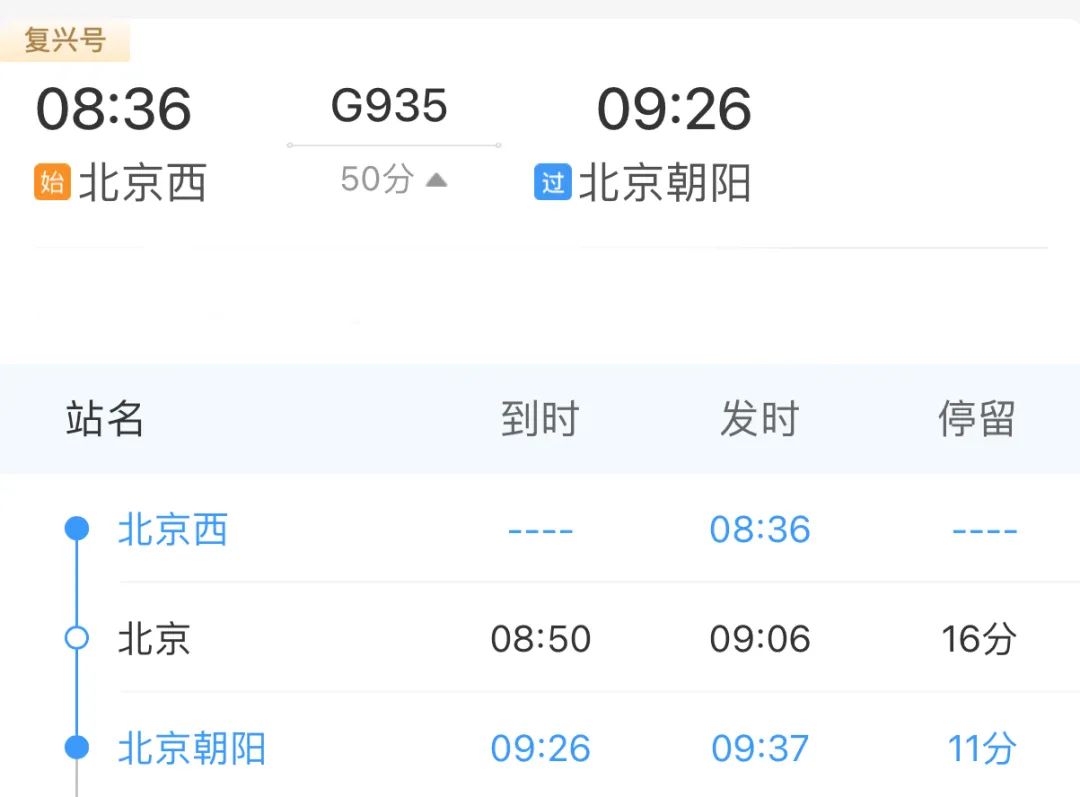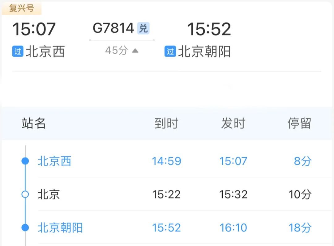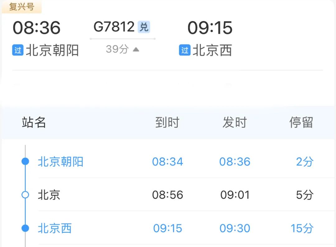 北京西站→北京站→北京朝阳站北京朝阳站还有新变化