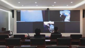 执行指挥中心内,本次执行行动总指挥院党组书记、代理院长孙俐兴通过大屏幕实时接收各执行现场传回的视频画面,及时全面地掌握执行现场的全方位信息,对执行活动进行指挥调度。