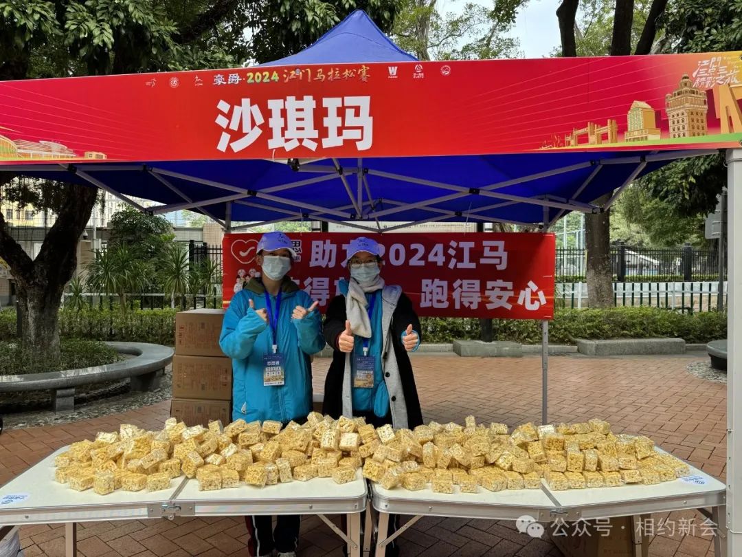 在江马新会段补给区姜汤、沙琪玛、芝麻糕、双水烧猪……