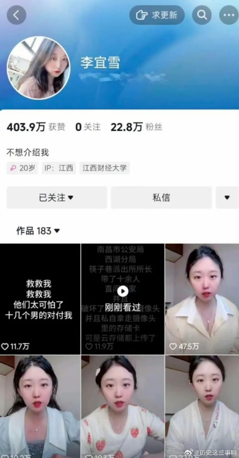 2022年4月22日,李宜雪被南昌市公安局西湖分局丁公路派出所以肇事肇祸为由,强制送入江西省精神病院。出院后,她以医疗损害责任纠纷为由起诉江西省精神病医院,并开始在网上曝光自己遭“丁公路派出所辅警猥亵”一事,此举引发了全网关注。