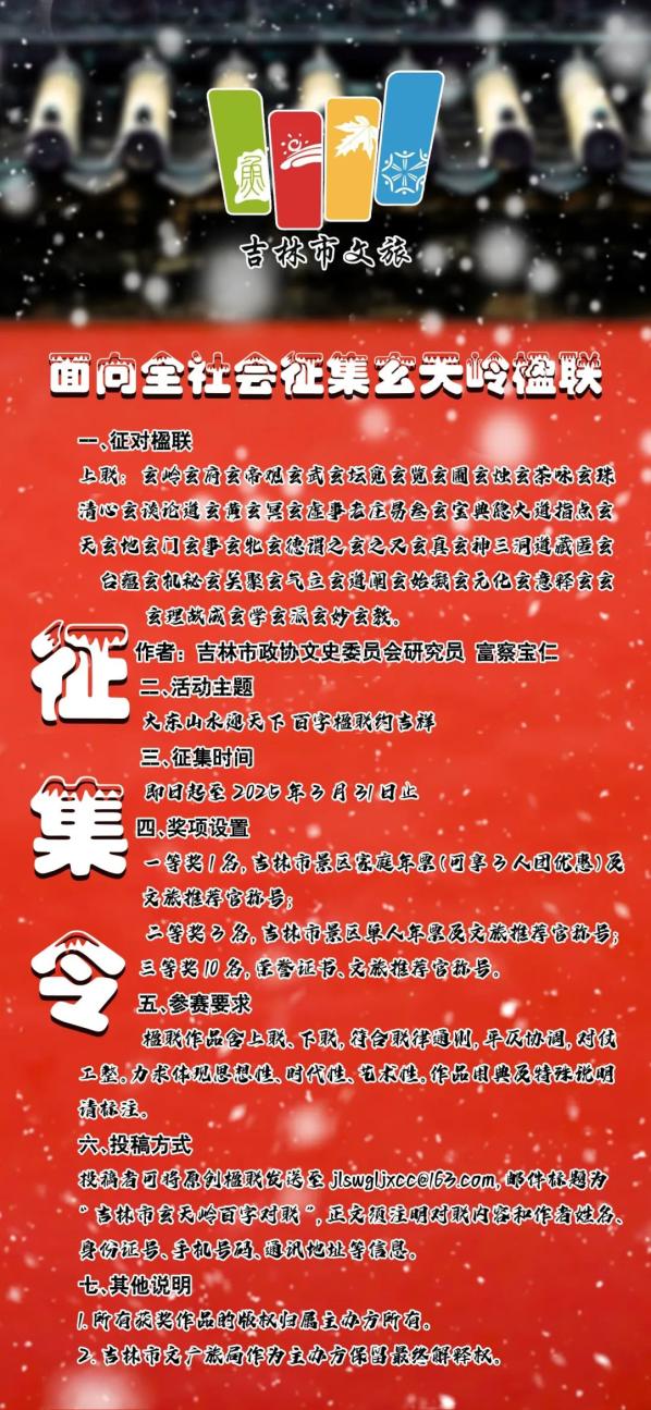 原标题∣吉林市2025玄天岭楹联征集启事来了!面向全社会楹联高手发出邀约