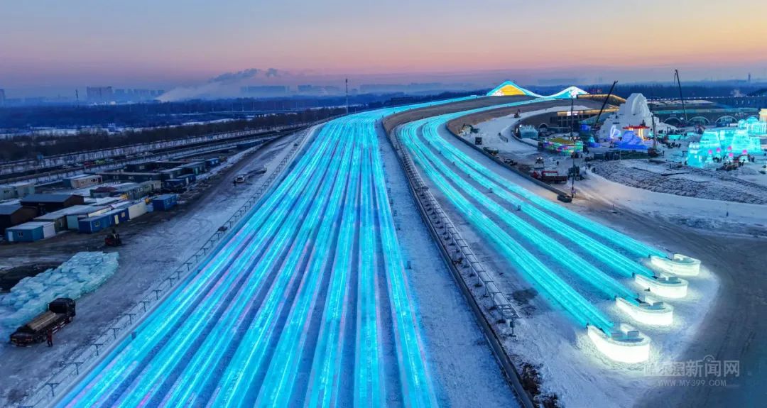 12月17日晚,哈尔滨冰雪大世界火爆全网的超级冰滑梯完工,今冬的冰雪欢乐更近一步。除了超级冰滑梯,哈尔滨冰雪大世界主形象大门“冰雪同梦”、主塔“亚洲同心”、梦想大舞台、雪花冰迷宫、世纪之钟、雪圈滑道等冰雪景观和娱乐项目,均已进入建设收尾阶段。