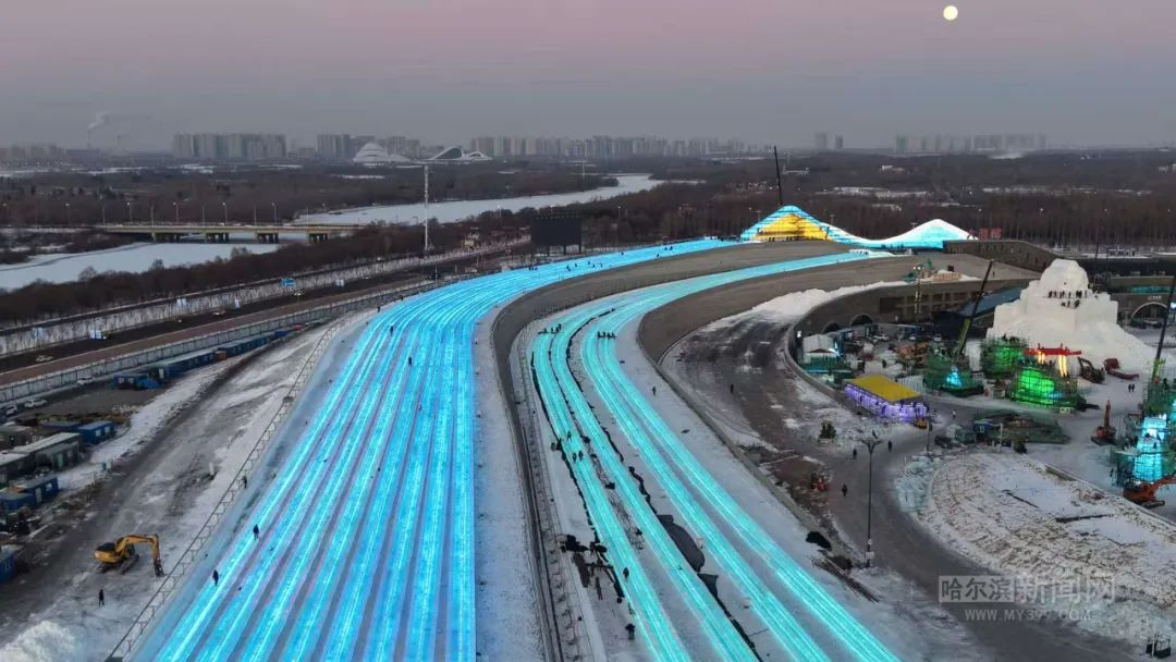 第二十六届哈尔滨冰雪大世界冰建施工开始以来,万余名工人昼夜赶工,近千台作业机械不停运转,园区每天都是“新面孔”。超级冰滑梯作为园区最具人气的娱乐项目,每年冬天都会吸引众多游客慕名而来体验。乘坐上专用的爬犁,从滑梯顶端疾驰而下,上演冰雪版的速度与激情,那种风驰电掣般的畅爽与刺激,绝对让人大呼“过瘾”。