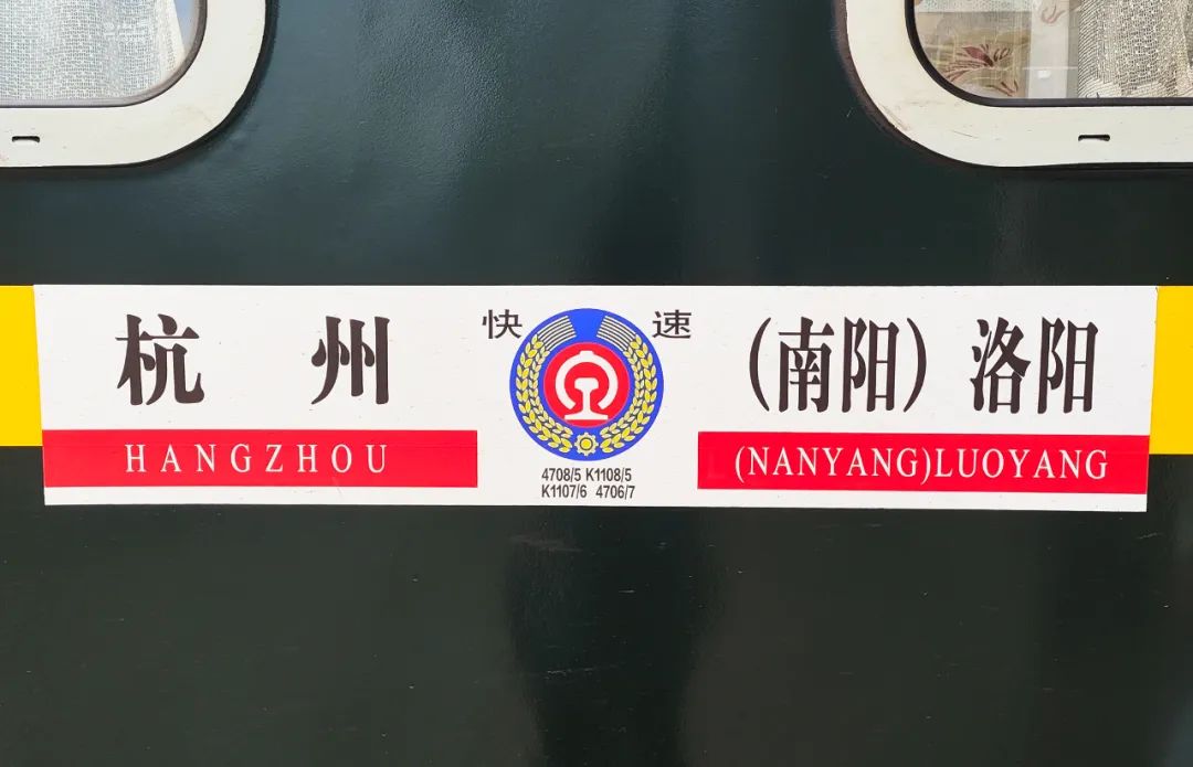 * K1108/5和K1106/7次现行列车方向牌