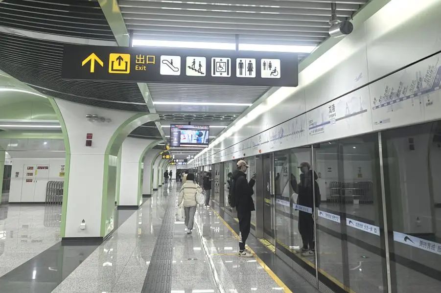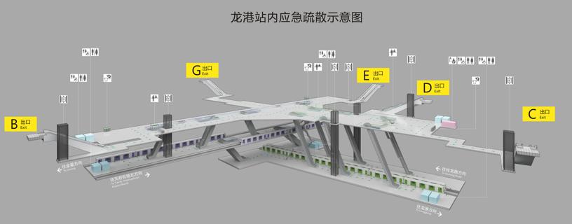 龙港站作为8号线和19号线的换乘站,一共有三层,8号线和19号线的站厅都处于负一层,但19号线的站台在负二层,8号线站台则在负三层。