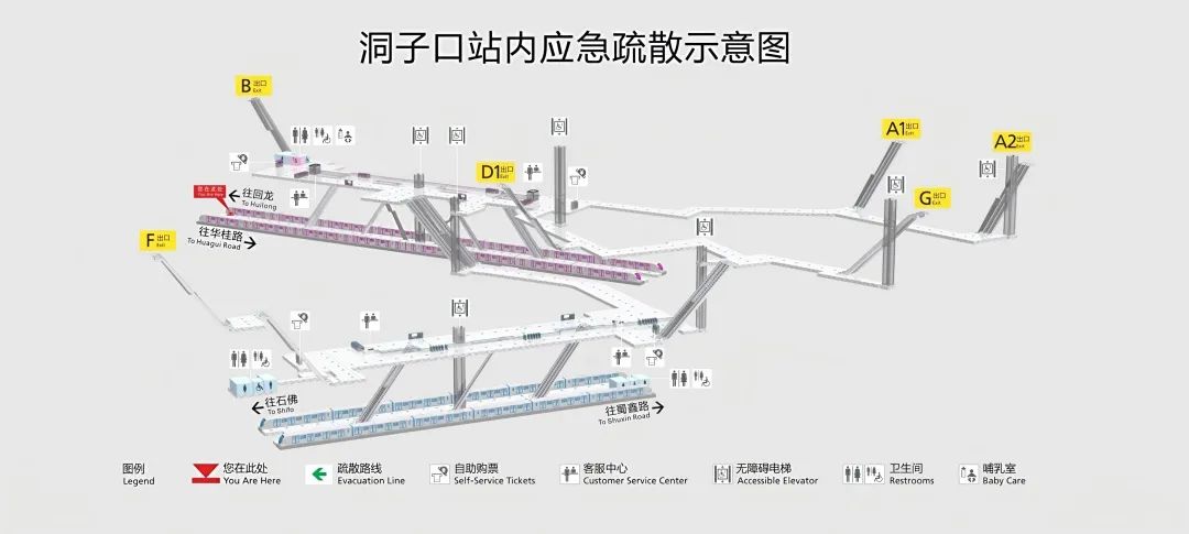 洞子口站洞子口站作为27号线和5号线的换乘站,同样分为三层,但与龙港站不同的是,洞子口站两条换乘线路(5号线/27号线)的站厅不在同一层哦。5号线站厅位于负一层,5号线站台与27号线站厅均在负二层,27号线站台在负三层。