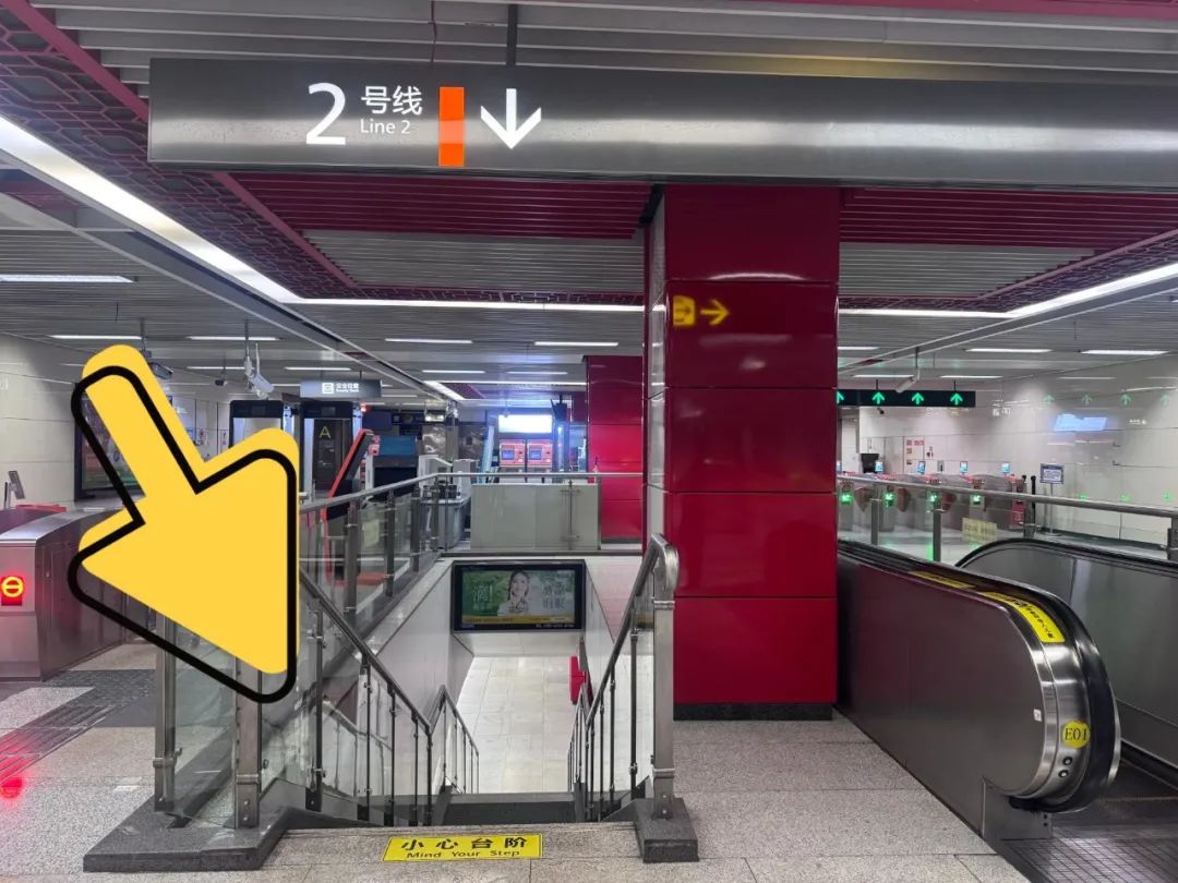 羊犀立交站3D示意图不管从2号线换乘27号线,还是27号线换乘2号线,路径都是一致的:借助扶梯或步梯,从站台来到站厅层,然后通过站内导向标识前往需要换乘的线路站台。